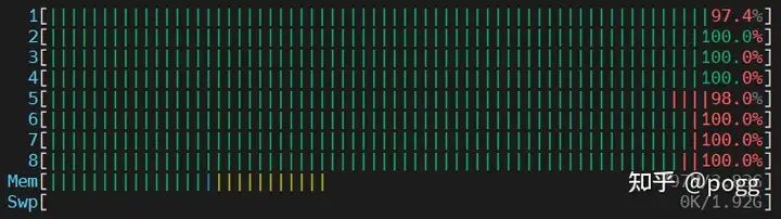OpenCV基本已将8颗CPU核全部占满,反观NEON操作全程只使用到一颗CPU核。