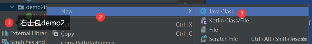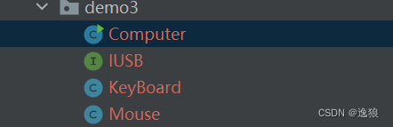 在包demo3中,创建3个类,一个接口