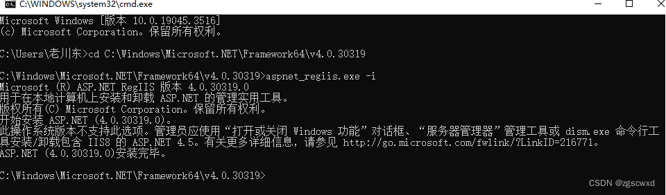 然后输入 aspnet_regiis.exe -i