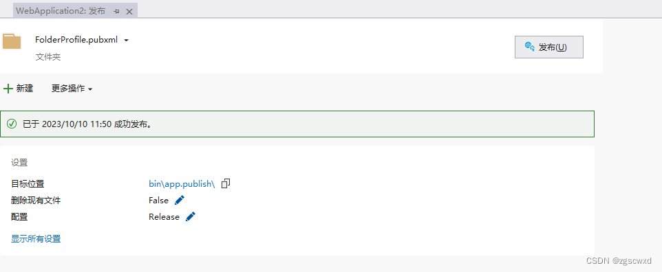 4.当页面上显示发布成功后,就完成了发布到文件夹的全部步骤。后续更新了代码,只需要再点击一次发布即可。