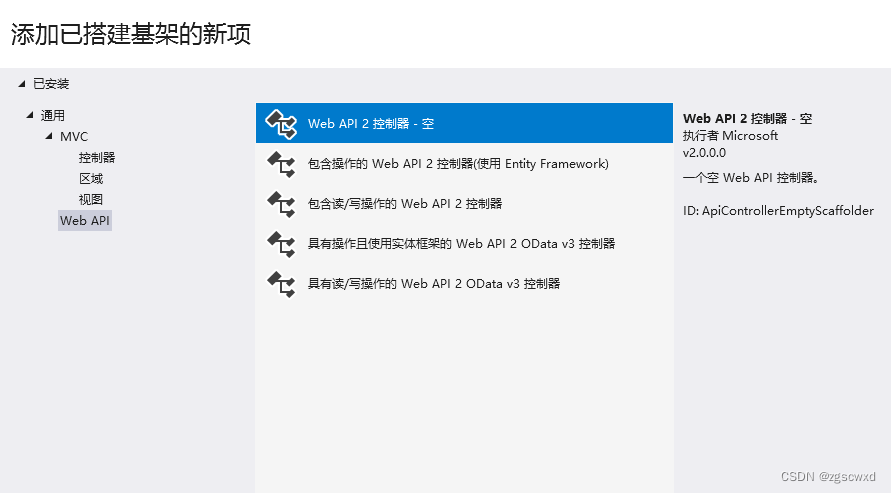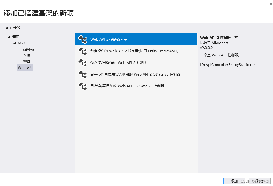 3.选中Controller右键,添加-控制器,点Web API,选择Web API 2 控制器 - 空