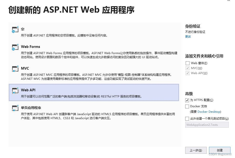 2.点击下一步,到这个页面时选择Web API。