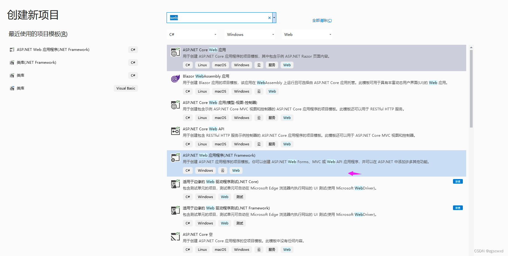 选择ASP.NET Web应用程序(.NET Framework)