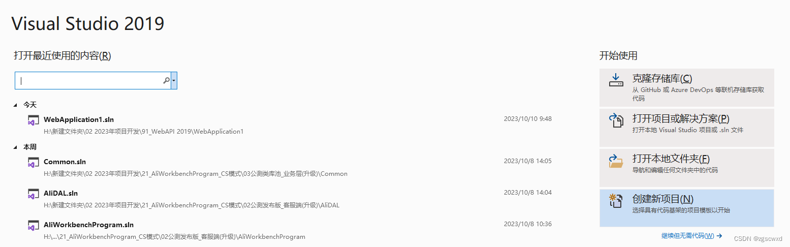 启动VS 2019,并在“开始页”选择“创建新项目”。或从“文件”菜单选择“新建”,然后选择“项目”。