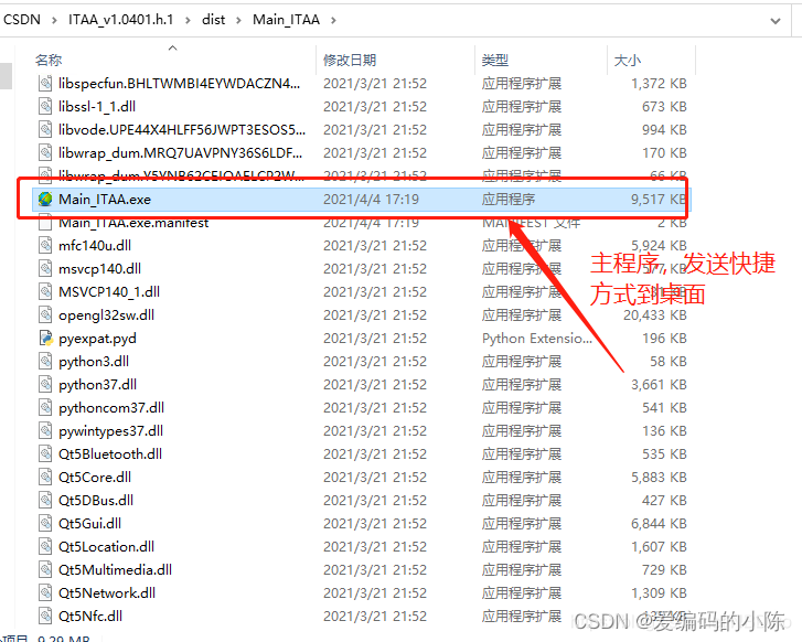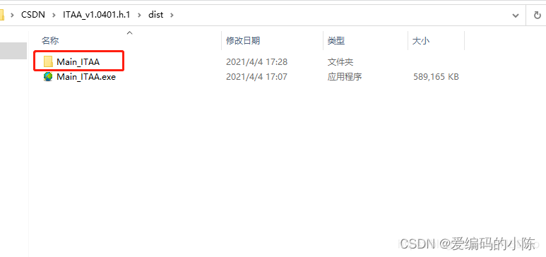 如上图所示,在该需要打包的程序文件夹中,Main_ITAA.py就是我们程序的入口(在python中点击该程序就可以直接运行),下面我们将其打包成一个只有exe的可执行程序,具体命令如下:
