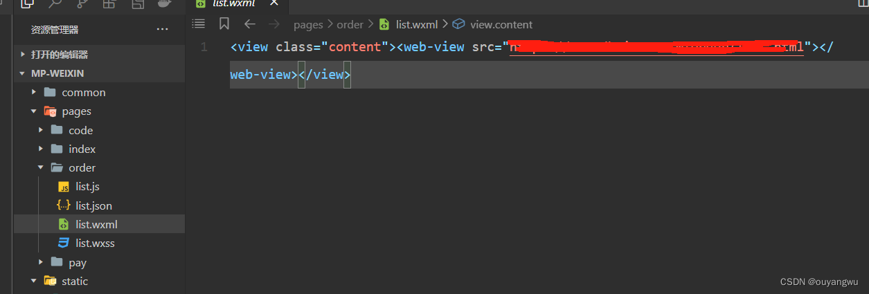 配置时则输入自己定义的小程序的页面路径 /pages/order/list