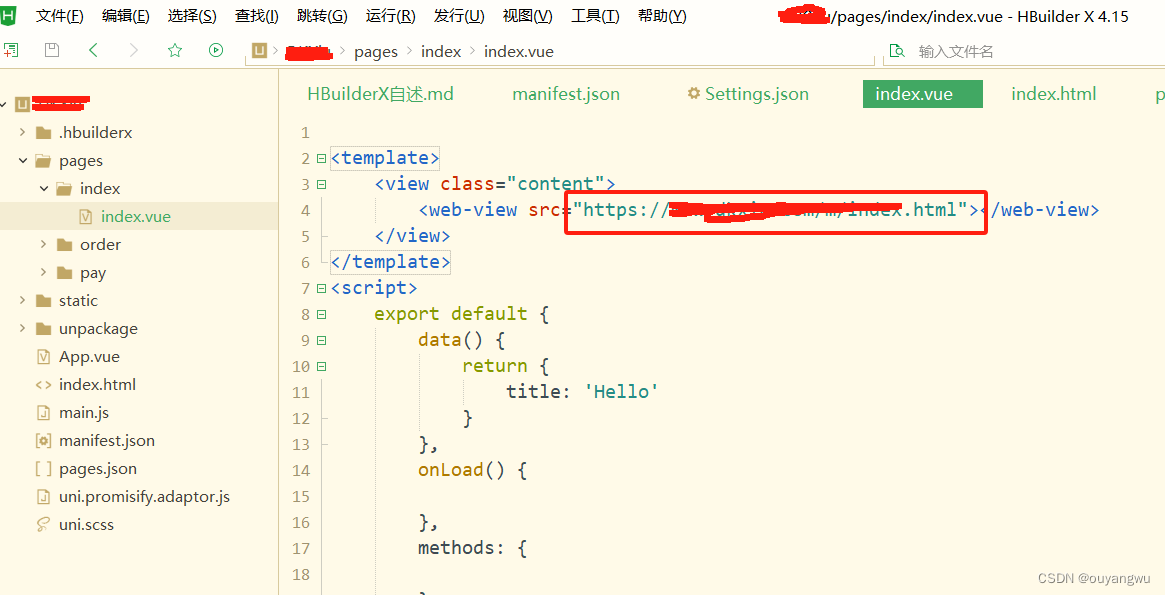 启动页的webview地址,src则是注意事项中h5发布的域名以及他访问的入口文件位置
