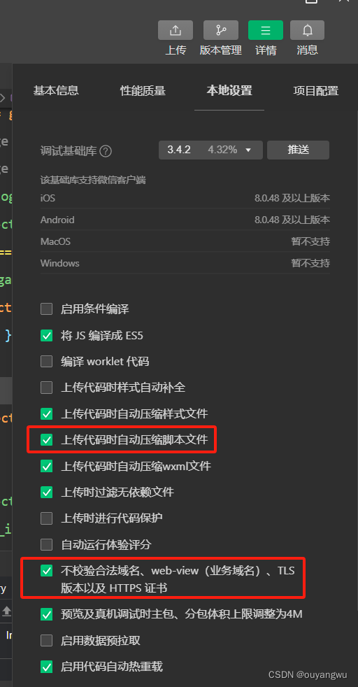 模拟运行和真机调试时,应勾选 不校验合法域名 选项。