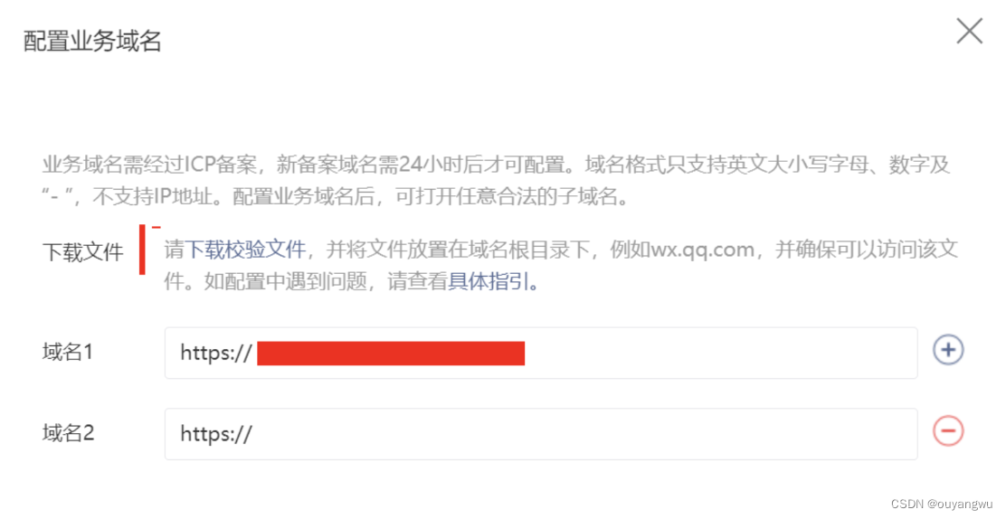 在小程序公众平台中 开发 开发管理 开发设置中配置业务域名为H5站点域名