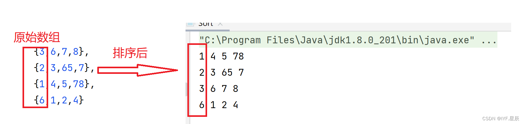 ->规则为从fromIndex<= a数组 实现方法:Collections.reverseOrder() 要实现降序排序,得通过包装类型的数组来实现,基本数据类型数组是不行的: 正确用法: 运行结果: 运行结果: 同时,我们可以用lambda表达是简化书写: 运行结果: 源码: 补充,二维数组的排序:通过实现Comparator接口来自定义排序二维数组,以下面为例: 运行结果: 好啦~本文到这里也是接近尾声了,希望有帮助到你,整理不易,希望多多三联支持呀~ 结语: 写博客不仅仅是为了分享学习经历,同时这也有利于我巩固知识点,总结该知识点,由于作者水平有限,对文章有任何问题的还请指出,接受大家的批评,让我改进。同时也希望读者们不吝啬你们的点赞+收藏+关注,你们的鼓励是我创作的最大动力! public static void main(String[] args) { //2.Arrays.sort(int[] a, int fromIndex, int toIndex) //规则为从fromIndex<= a数组