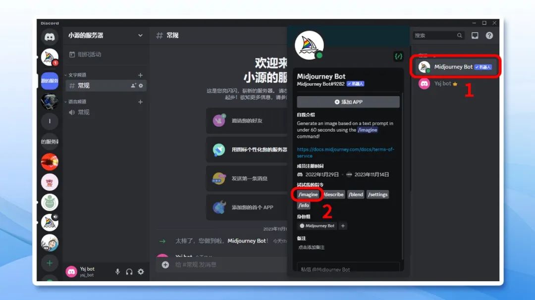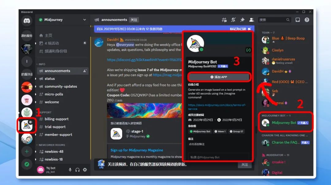 接下来我们需要_将Midjourney模块添加进Discord客户端_,有两种方法。