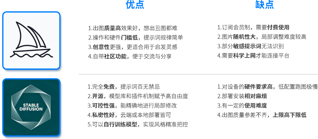 目前最常用的两大AIGC工具为Midjourney和Stable Diffusion。