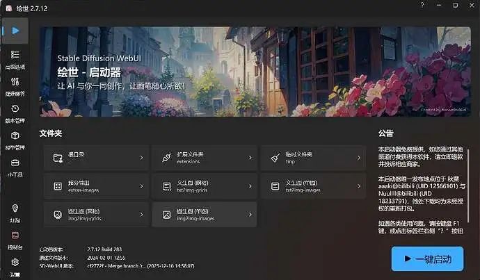 本整合包基于开源项目Stable Diffusion WebUI制作,仅供学习AIGC相关技术。