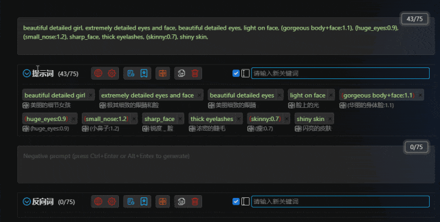 插件用途:旨在提高提示词/反向提示词输入框的使用体验。它拥有更直观、强大的输入界面功能,它提供了自动翻译、历史记录和收藏等功能,它支持多种语言,满足不同用户的需求。非常好用,必装插件之一,有了5和6轻松写提示词无压力。