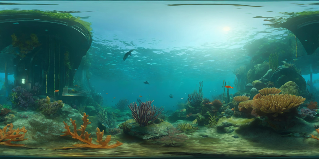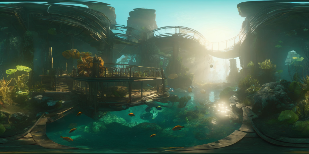 Cyberpunk style,Masterpiece,flawless,high quality,8K.,360 View,360,game environment,Fantastic Underwater World,lora:360RedmondResized:1,``赛博朋克风格,杰作,完美无瑕,高品质,8K。,360视图,360,游戏环境,神奇海底世界,lora:360RedmondResized:1,