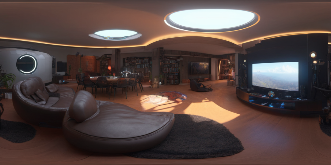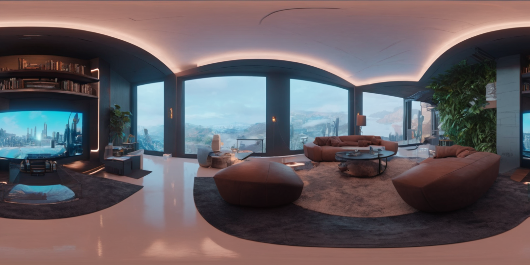 Cyberpunk style,Masterpiece,flawless,high quality,8K.,360 View,360,game environment,interior,futuristic living room,lora:360RedmondResized:1,``赛博朋克风格,杰作,完美无瑕,高品质,8K。,360视图,360,游戏环境,内部,未来客厅