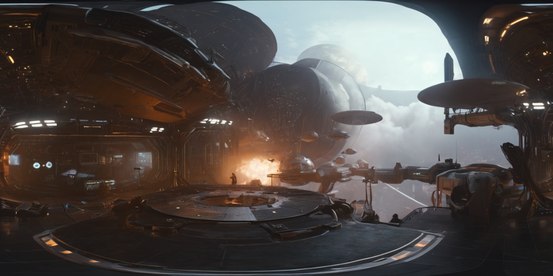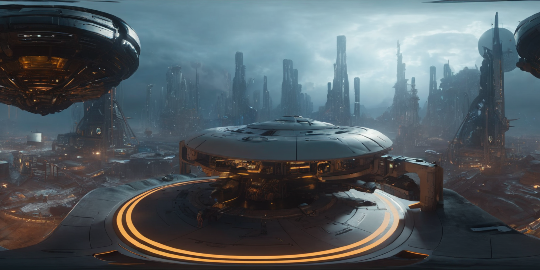 Cyberpunk style,Masterpiece,flawless,high quality,8K.,360 View,360,game environment,outer space,spacecraft,science fiction,lora:360RedmondResized:1,``赛博朋克风格,杰作,完美无瑕,高品质,8K。,360视图,360,游戏环境,外太空,航天器,科幻小说,lora:360RedmondResized:1,