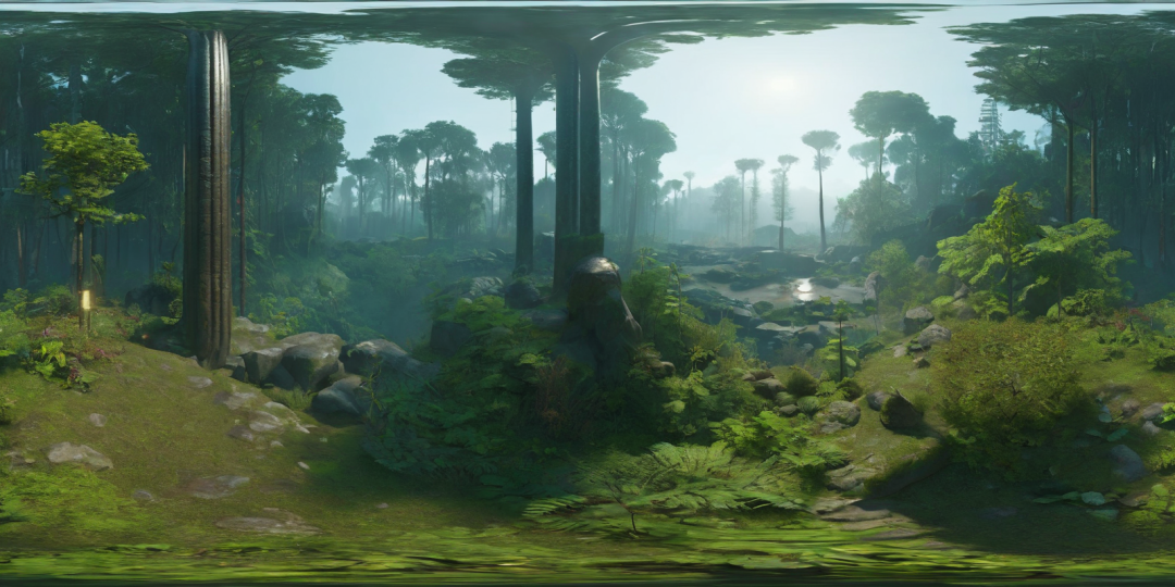 Cyberpunk style,Masterpiece,flawless,high quality,8K.,360 View,360,game environment,Fantasy Forest,lora:360RedmondResized:1,``赛博朋克风格,杰作,完美无瑕,高品质,8K。,360视图,360,游戏环境,梦幻森林,lora:360RedmondResized:1,