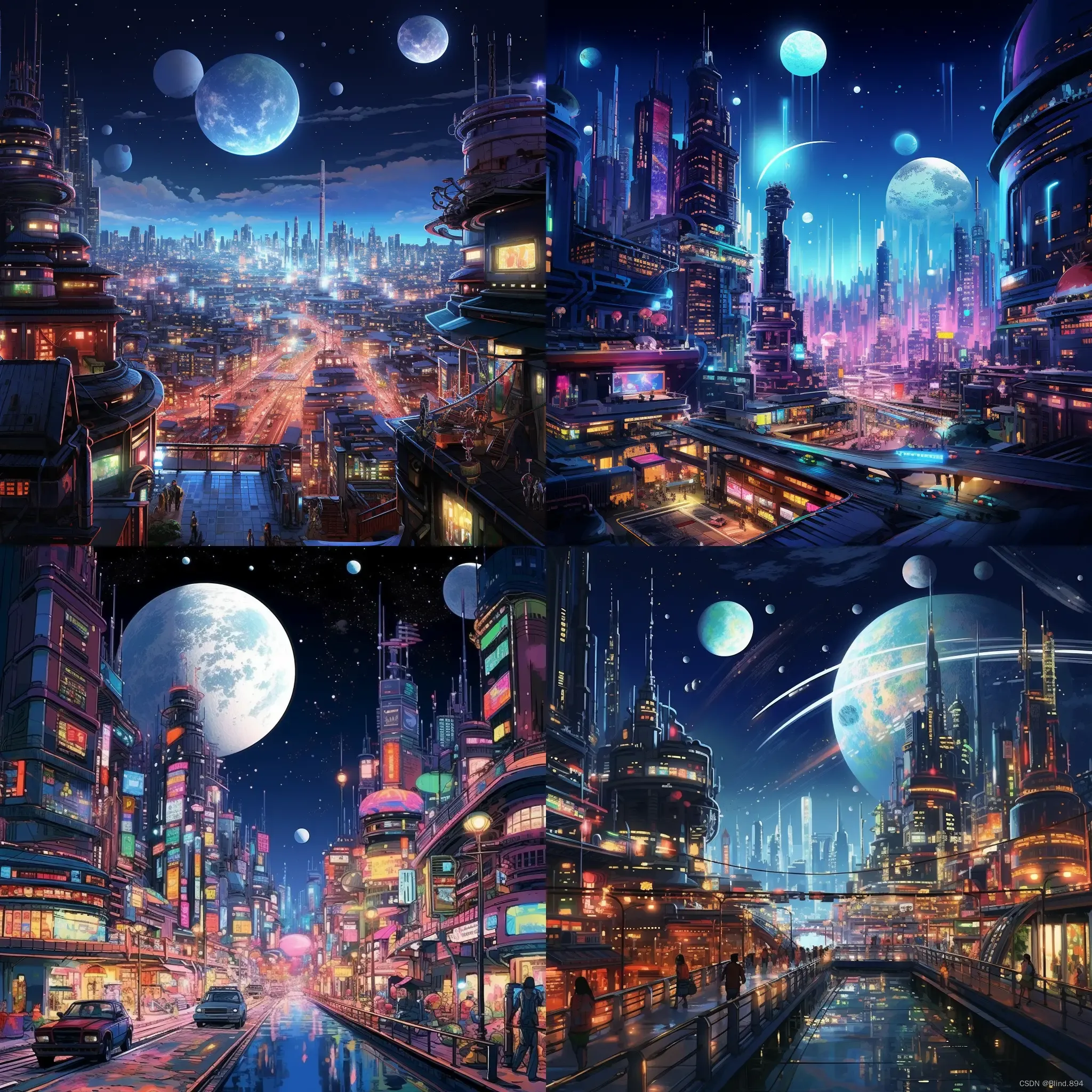 a futuristic city on a giant screen, neon, moon lighting. Spectacular details.Epic composition, in the Style of Hayou Miyazaki,and Shinkai Makoto, Anime, Animation Concept Art,Studio Ghibli, Natural Lighting. Realistic,Beautifully Detailed.