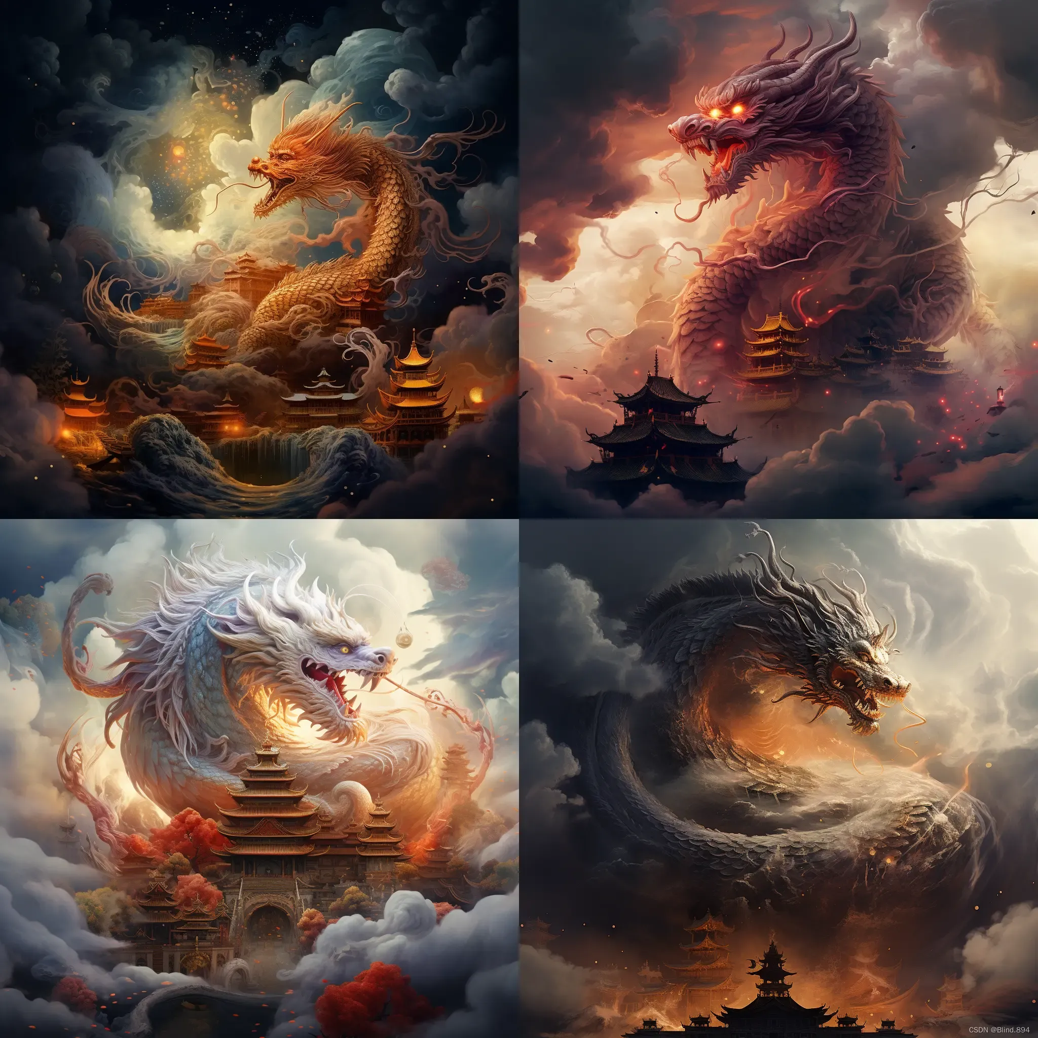 This is a beautiful real picture, Perfect details:: Oriental mythology, super exquisite, colorful auspicious clouds, colorful dragons, huge moon, starry sky.smoke. Movie HD, magic ,engine, a lot of details, surrealism, lighting.