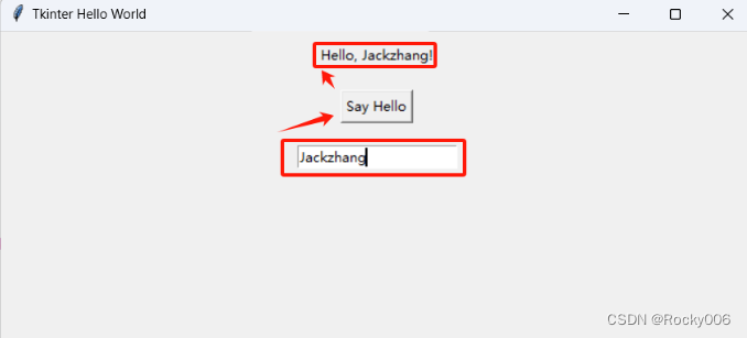 通过这个修改,用户可以在 Entry Widget 中输入他们的名字,点击 Say Hello 按钮将会向他们打招呼。