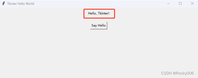 保存文件并运行它,你应该会看到一个带有标签和按钮的窗口,点击该按钮将把标签文本更改为"Hello, Tkinter!":
