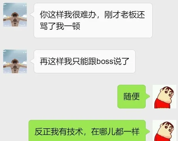 老板找各种借口逼你辞职、和同事闹各种不愉快、钱没有给到位,做得十分憋屈。辞职时,在心里暗思:反正我有技术,在哪不一样。