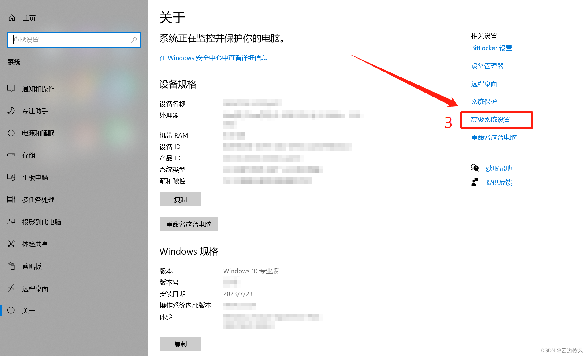 找到”关于”→高级系统设置