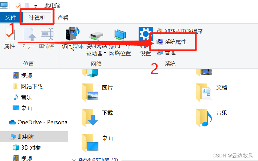 打开“我的电脑”or文件管理页面→计算机→系统属性