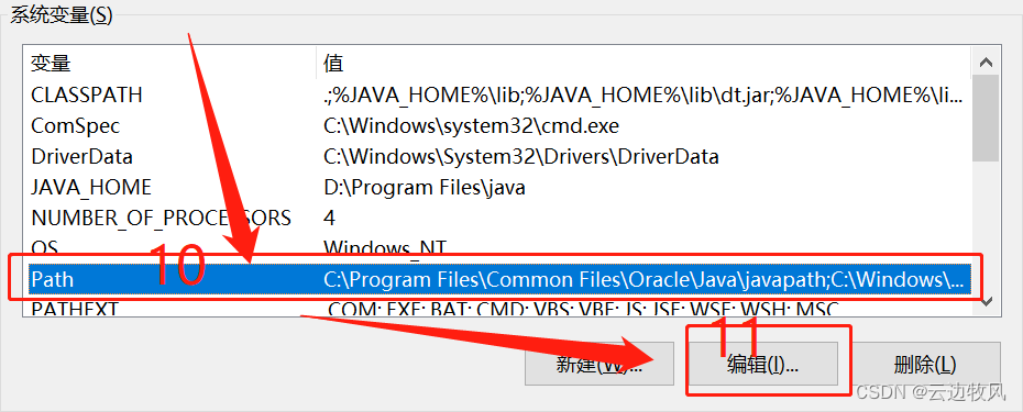 然后在系统变量(S)中找到 Path,单击一下它,紧接着点击 编辑