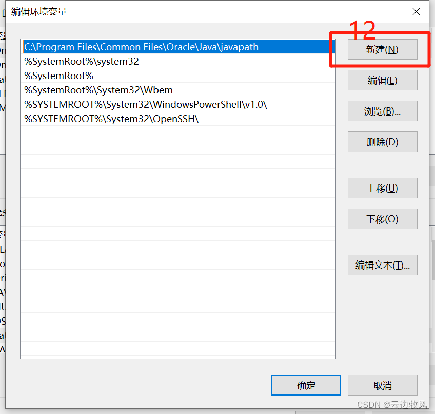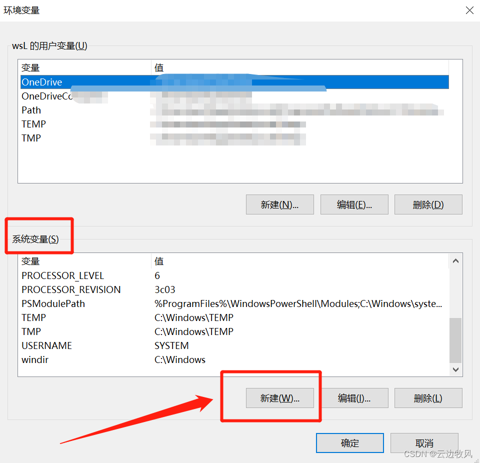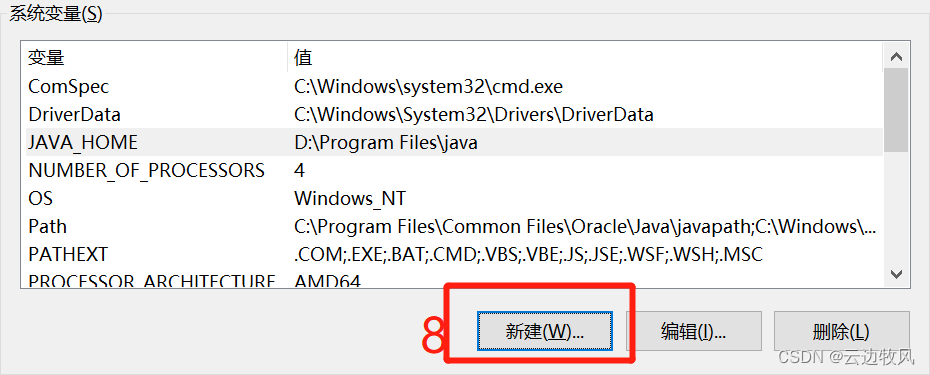 系统变量→新建