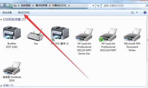 在“设备和打印机”窗口中,点击“添加打印机”。