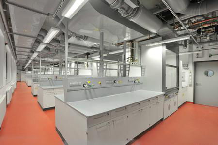 1. 通风管道安装:根据设计方案,将通风管道铺设到各个实验室,确保管道连接牢固、密封良好。