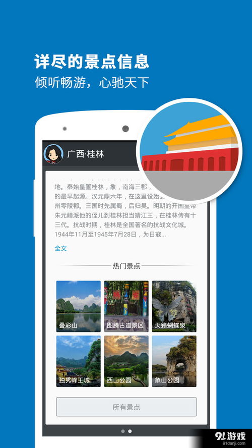 在目的地页面,您可以浏览景点介绍、图片、语音讲解等内容。