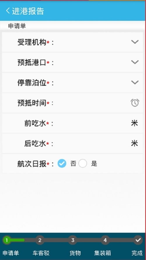 3. 填写信息:登录后,按照要求填写船舶信息、申请人信息等。