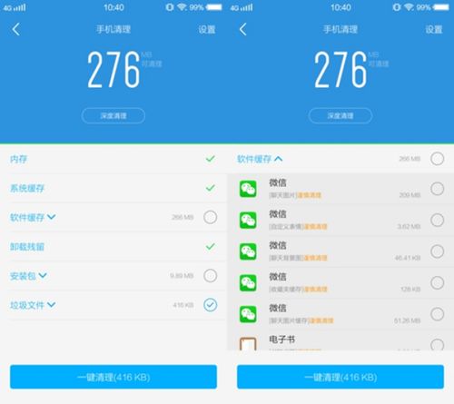 2. 垃圾清理:手机使用久了,会产生很多垃圾文件,i管家可以帮助你一键清理,让你的手机更加干净。