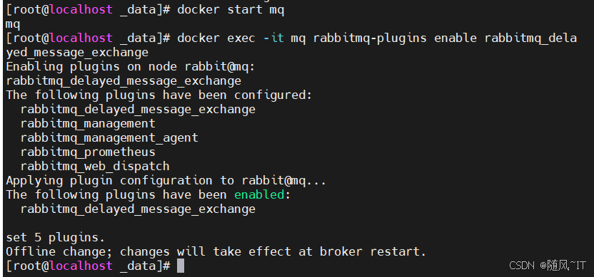 docker exec -it mq rabbitmq-plugins enable rabbitmq_delayed_message_exchange