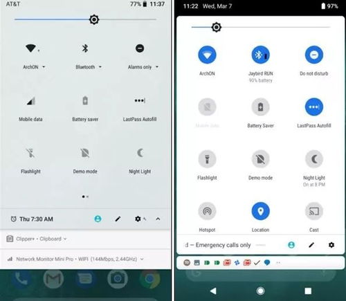 首先,咱们得聊聊外观设计。安卓9系统采用了全新的“Pie”设计,界面简洁,色彩搭配清新,给人一种小清新的感觉。而安卓10系统则在Pie的基础上进行了优化,加入了更多的个性化元素,界面更加时尚,给人一种眼前一亮的感觉。