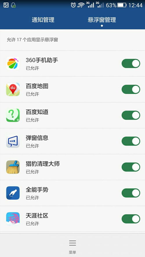 你有没有发现,手机上那些小小的悬浮窗,简直就是现代生活的神器啊!它们就像小精灵一样,随时随地出现在你的屏幕上,告诉你各种信息,让你在忙碌的生活中也能轻松掌握全局。今天,就让我来手把手教你,如何让你的安卓手机也能开启这个神奇的悬浮窗功能吧!
