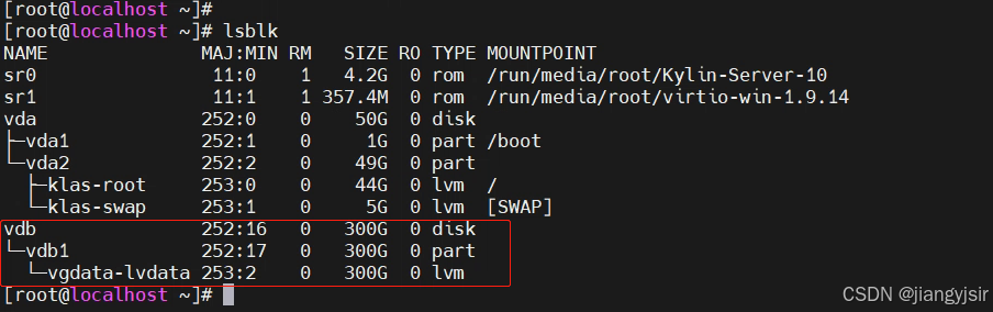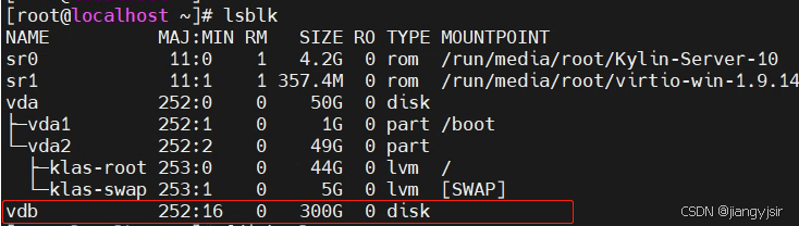 通过以上命令查看到系统存在vdb磁盘未挂载。