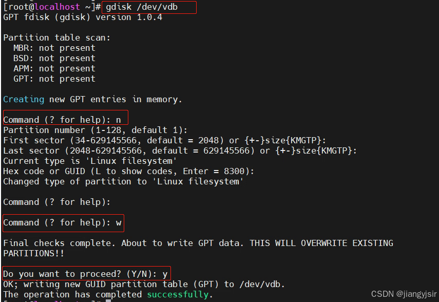 这里采用gdisk命令分区,还可以采用fdisk命令来分区。
