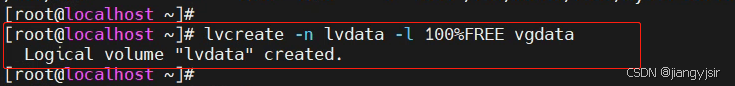 “lvdata”为逻辑卷名称,“100%FREE”表示使用全部剩余空间。