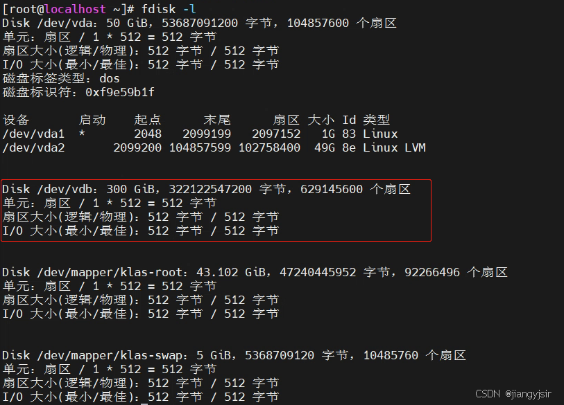 上图中存在/dev/vdb磁盘未分区。