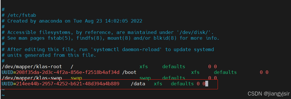 vim /etc/fstab
