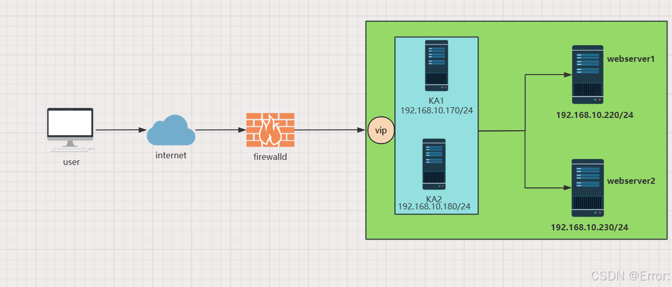 - VIP:虚拟IP地址,正真向客户服务的IP地址