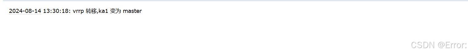 [root@ka1 ~]# touch /blue [root@ka1 ~]# ll /blue -rw-r--r--. 1 root root 0 8月 14 17:25 /blue [root@ka1 ~]# systemctl restart keepalived.service [root@ka1 ~]# ifconfig ens33: flags=4163 mtu 1500 inet 192.168.10.170 netmask 255.255.255.0 broadcast 192.168.10.255 inet6 fe80::20c:29ff:feea:fe5a prefixlen 64 scopeid 0x20 ether 00:0c:29:ea:fe:5a txqueuelen 1000 (Ethernet) RX packets 298043 bytes 27493779 (26.2 MiB) RX errors 0 dropped 0 overruns 0 frame 0 TX packets 234948 bytes 17862710 (17.0 MiB) TX errors 0 dropped 0 overruns 0 carrier 0 collisions 0