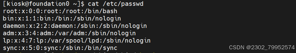 - 使用 cat /etc/passwd 命令 查看 /etc/passwd 文件存储的有关本地用户的信息。