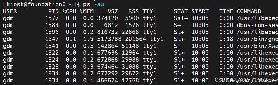 - 使用 ps 命令 查看进程信息,默认仅显示当前shell中的进程。ps -a 命令 可查看某一终端相关的所有进程。ps -u 命令 可查看与进程关联的用户。