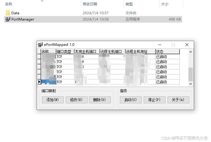 这时候可能会产生一个问题,服务端与分到公网ip的主机是局域网,我找到的是主机,没有找到局域网内的服务端怎么办,比较简单的办法就是 直接转发走,可以下载一个端口转发器,将公网ip的端口 转发 到 局域网中的端口上去下面给个截图