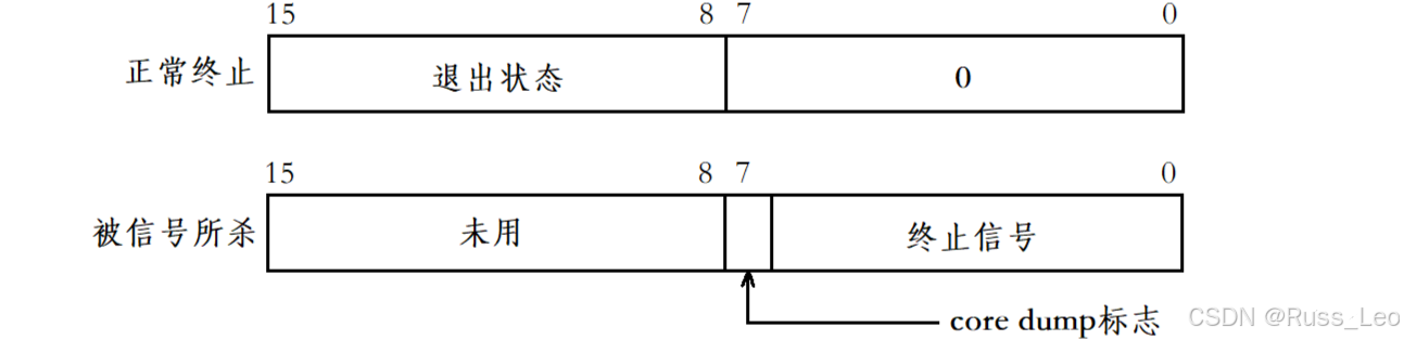 exitCode = (status >> 8) & 0xFF; //退出码 exitSignal = status & 0x7F; //退出信号